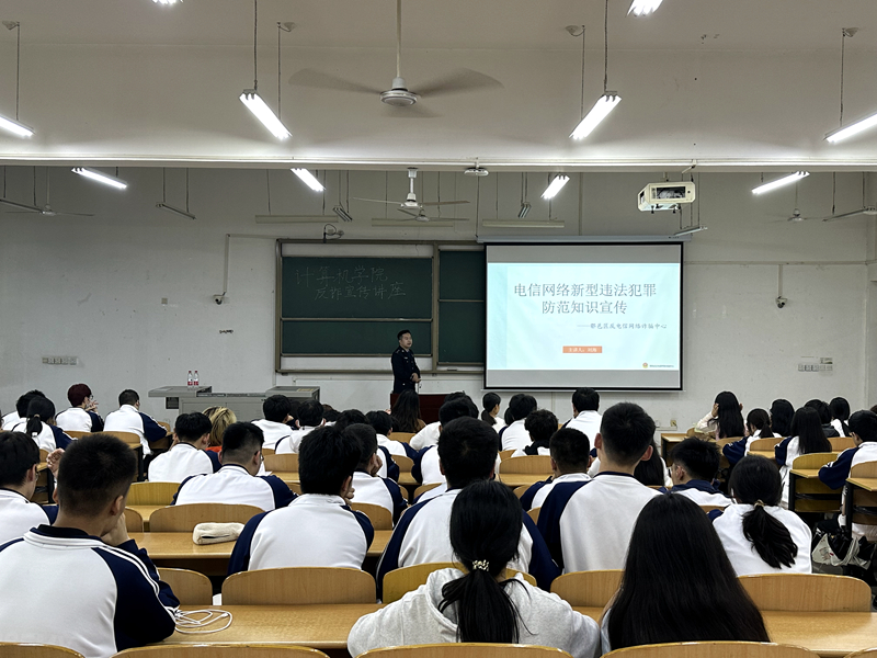 为了提高学生们对于诈骗问题的认识,加强个人信息保护意识,5月29日晚,计算机学院在鄠邑校区博览楼121教室举办防范电信诈骗专题讲座。本次讲座由沣京路派出所的郑昊警官担任主讲嘉宾,学院2022级辅导员李晨、姚谦以及2022级全体学生干部参加。