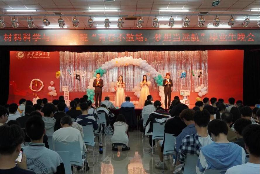 初夏微雨诉别离,师生欢聚忆往昔。为了欢送即将毕业的材子佳人们,5月31日晚,材料科学与工程学院“青春不散场,梦想当远航”毕业生晚会在鄠邑校区腾辉大学生活动中心隆重举行,学院党委副书记张云姿、副院长朱世东、团委书记郭媛、各年级辅导员、教师代表、全体毕业生和各年级学生代表近500人参加了晚会,师生齐聚一堂,共度难忘之夜。