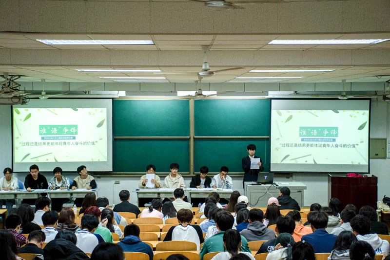 5月15日至28日,计算机学院举办了“谁‘语’争锋”辩论赛。经班级前期选拔,学院预赛,共有8名同学脱颖而出进入决赛。决赛于5月25日晚在鄠邑校区博览楼134教室举办。学院2020级辅导员刘亭普、2022级辅导员姚谦及学生会主席团代表担任评委,2022级学生共计300余人观赛。