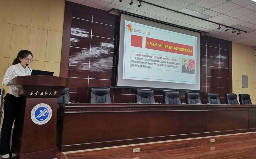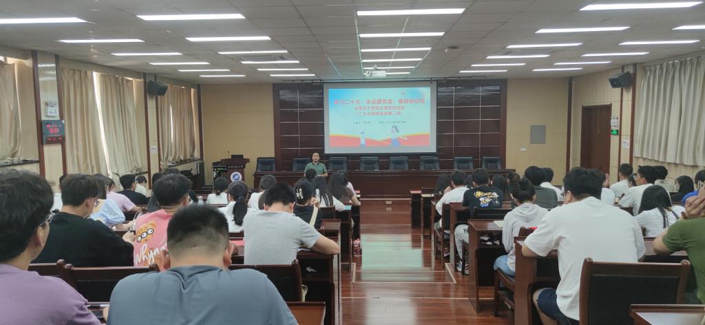 为深入学习宣传贯彻党的二十大精神,落实《中共bat365中文官方网站委员会关于认真学习宣传贯彻党的二十大精神的通知》,按照党委研究生工作部相关要求,5月19日下午,化学化工学院在雁塔校区会议中心第五会议室,开展学习党的二十大精神系列宣讲第二讲“学习二十大,永远跟党走,奋进新征程”,党的二十大精神研究生宣讲团成员、化学化工学院研究生第四党支部书记尹兴雨同志担任主讲,活动由辅导员李超伟老师主持,化学化工学院全体研究生党员、预备党员、发展对象90余人参加了会议。