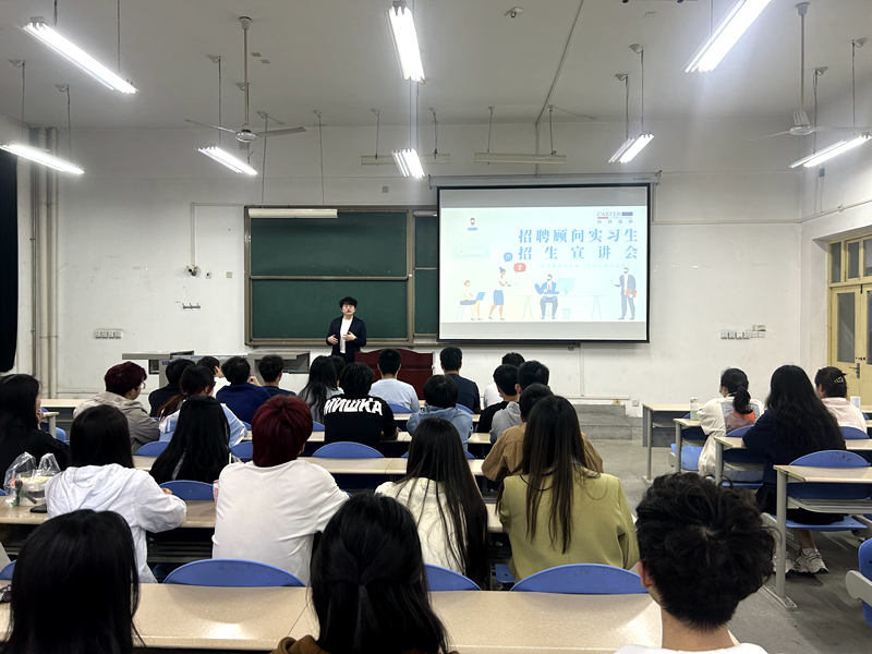 许圣敏首先从公司概况、组织结构、企业文化、工作环境等方面向参会学生介绍了科锐国际有限公司相关情况,接着对公司暑期招聘顾问实习生项目做了详细的说明,最后对同学们在实习期薪资待遇、实习地点及时间、实习工作内容及实习后转正等相关问题进行了逐一解答。宣讲会结束后,现场有20余名同学达成了初步的暑期实习意向。