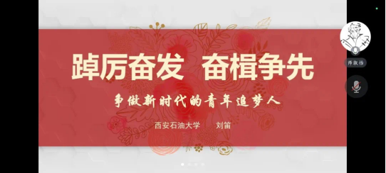 刘笛以“踔厉奋发奋楫争先”为题,围绕习近平总书记关于教育的重要论述和对青年的殷切寄语,从“学思想、端动机;勤思考、善学习;提格局、勇担当;有情怀、立大志”四个方面,教育引导同学们肩负时代使命,彰显青年担当。他告诉学员们要陶冶情操、勤学修德、求真向善、诚信友爱,要成为一个有理想、敢担当、能吃苦、肯奋斗的新时代青年。他教导学员们要有人类情怀、家国情怀、石油情怀、班级情怀,要立大志、明大德、成大才、担大任。课程最后,刘笛告诉学员们要珍惜韶华、不负青春,勇立潮头、奋发有为,并且祝全体学员前途似海、未来可期。