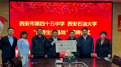 为加强学校本科招生宣传工作,推进优秀生源基地建设,5月5日上午,计算机学院党委书记庞秉谦、信息化建设与管理处处长王学龙、教务处副处长陈熙等一行四人赴西安市第四十五中学举行“优秀生源基地”授牌仪式。庞秉谦书记代表学校与西安市第四十五中学莫荻校长签署了《bat365中文官方网站优秀生源基地建设协议》,并授予“优秀生源基地”牌匾。