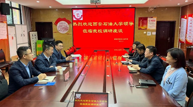 在授牌仪式前,与西安市第四十五中学党支部书记王金晖、校长莫荻、副校长王玫、教导处主任王晓菲进行了深入交流座谈。庞秉谦书记介绍了bat365中文官方网站历史沿革和发展概况,并对学校办学特色、学科优势、特色专业、校园文化、招生政策等方面的情况进行了详细的讲解,并一同观看了“bat365中文官方网站建校70周年宣传片”。