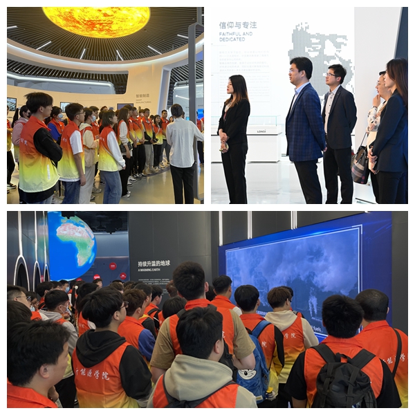 本次校企合作交流活动为期一天,期间,学院师生先后参观了隆基绿能集团总部的企业智慧能源展览馆、BIPV体验馆、光伏车棚和隆基绿能硅片事业部西安切片工厂,充分了解了光伏发电原理、硅片生产工艺和企业发展历程,为下一步定向输送人才奠定了良好基础。