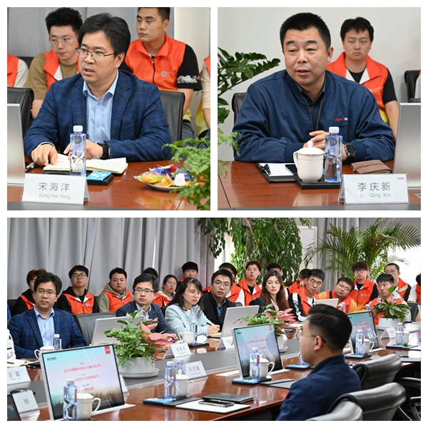 李庆新对宋海洋一行表示热烈欢迎,并将企业的基本情况、发展历程、业务分布、企业文化及发展理念等方面进行了简单介绍。他表示,企业秉承“稳健可靠、科技引领”的品牌定位,聚焦科技创新,构建单晶硅片、电池组件、工商业分布式解决方案、绿色能源解决方案、氢能装备五大业务板块,针对目前的发展规模和趋势,企业对于高素质人才的需求是非常迫切的,“隆基班”的成立非常及时,既为学生解决了就业问题,又为企业注入了新鲜血液,为学生提供了更为广阔的发展平台和就业机会,真正实现了学校企业学生三赢的局面,希望双方能继续拓展人才培养途径和方式,全面推动校企深度融合。
