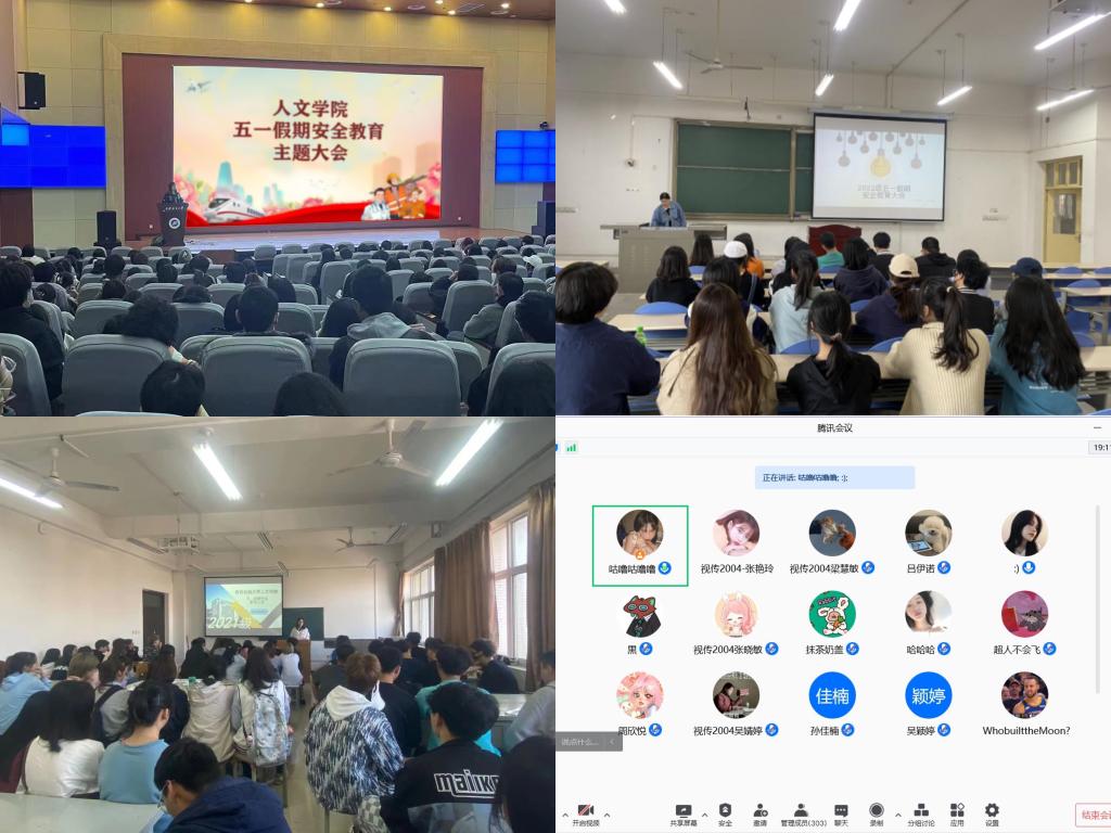 人文学院于4月25日-27日,各年级辅导员分别深入宿舍检查内务及安全隐患,并通过线上线下年级大会、班会等形式强调五一假期相关安全注意事项,第一,自觉遵守国家安全法律法规;第二,遵守交通法规,不乘坐违规车辆;第三,不组织同学外出旅游;第四,严格遵守校纪校规,不在宿舍内使用违规电器;第五,留校学生不晚归、不夜不归宿,不留宿外来人员;第六,遵守《全国青少年网络文明公约》,增强自护意识,谨防网络诈骗。