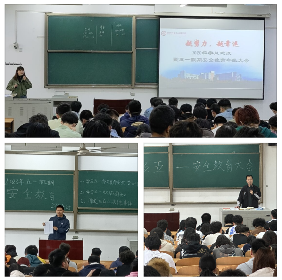 为扎实做好五一假期学生安全教育和管理服务工作,4月24日-27日,材料科学与工程学院通过召开专题工作例会、年级大会、主题班会,走访学生宿舍,登记去向、签订承诺书等形式扎实开展五一假期学生安全教育工作。