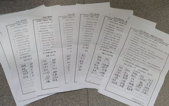 会议伊始,辅导员带领同学们分析、梳理了五一假期的安全隐患,并对公共安全、外出安全、校园安全、网络安全、人身安全等方面进一步详细讲解。同时以班级为单位组织学生签订《石油工程学院学生节假日承诺书》,并严格落实学生离校登记制度,做好学生假期去向登记、请销假等有关要求;其次,辅导员强调了五一假期期间要严格遵守法律法规和学校学院规章制度,不在校内外酗酒、滋事。叮嘱学生们注意日常行为安全,不前往未开发地区游玩,注意交通安全,选择正规的交通工具,提前做好行程规划,随时保持联络畅通,同时要提高自身安全意识和防诈骗意识,做到防火、防盗、防电信诈骗,切实保护好自身财产和生命安全;对明德校区有摩托车、电动车的同学强调,一定要遵守交通规则,佩戴好头盔等相关护具,确保自身骑行安全。最后,辅导员将本次大会内容传达到各个年级群,确保此次安全教育全覆盖、零遗漏。