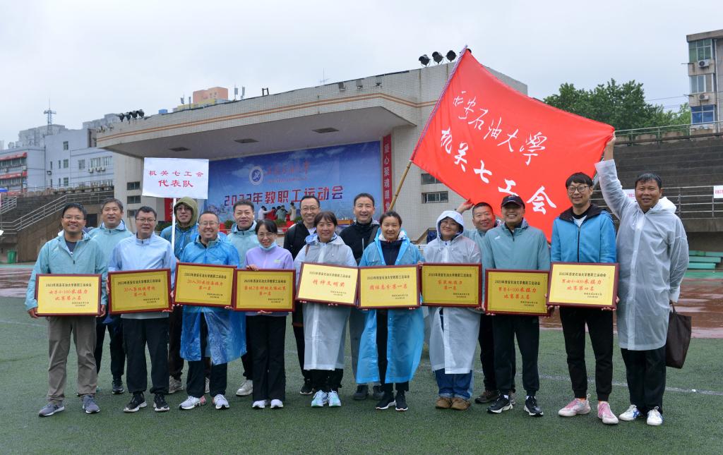 4月21日,bat3652023年教职工运动会在雁塔校区田径场举行。由后勤处职工组成的机关七工会代表队迎风冒雨,团结协作、并肩战斗、奋勇拼搏。这只运动员平均年龄达48岁多的代表队,一共参加了7项集体、23项个人比赛项目,参加人员为39人次。为期一天的赛事活动中,大家在赛场上热情洋溢,挥洒汗水,留下了一个个拼搏进取的矫健身影、一幅幅精彩绝伦的竞技画面。