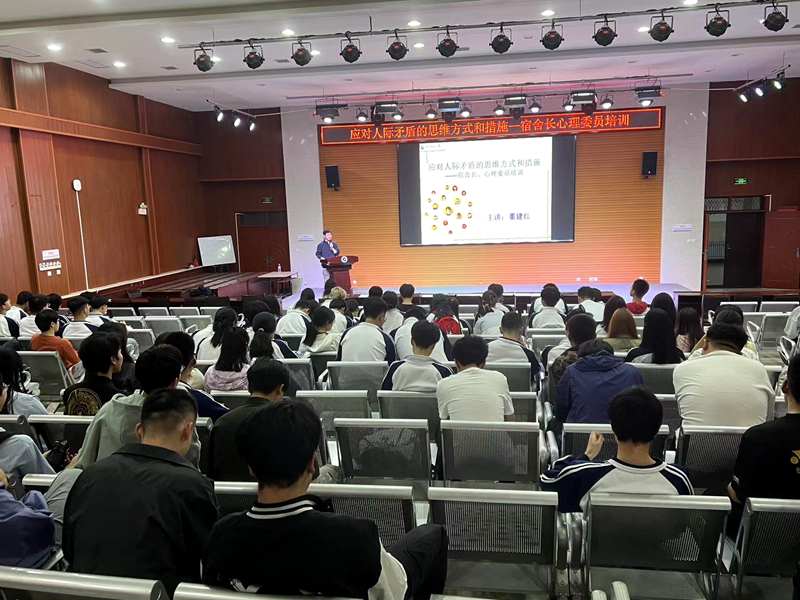 为进一步加强我院心理健康教育工作,帮助学生更好地处理人际矛盾,提高学生心理素质和自我调节能力,4月17日晚,计算机学院在鄠邑校区崇文楼118阶梯教室举办“应对人际矛盾的思维方式和措施”心理健康知识专题讲座。本次讲座邀请bat365心理成长指导中心董建红老师担任主讲,计算机学院2022级辅导员姚谦主持,2021级、2022级全体心理委员及宿舍长参加了此次讲座。