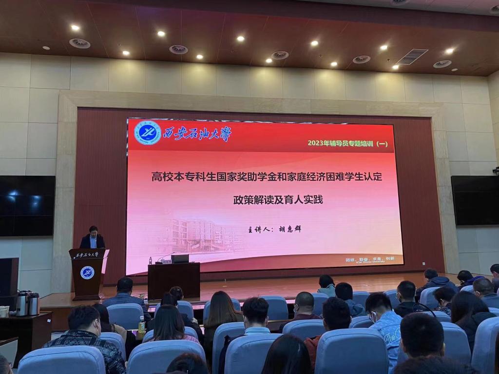 4月6日下午,bat3652023年辅导员专题培训第一讲在鄠邑校区弘石报告厅举行。陕西省教育厅资助管理中心胡惠群副主任以“高校本专科生国家奖助学金和家庭经济困难学生认定”的政策解读与育人实践为主题作专题报告。会议由学生处处长王亮主持,学生资助中心、校团委、各院系主管学生工作负责人和全体辅导员参加。