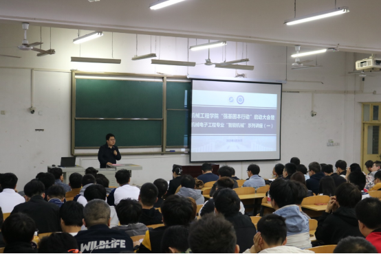 3月30日晚,机械工程学院在鄠邑校区B112教室召开“强基固本行动”启动大会暨机械电子工程专业首次“智能机械”讲座。学生工作部(处)部(处)长王亮、教务处副处长马加传应邀参会,学院党委副书记刘冰,智能机械系教授吴泽兵、魏航信、许爱荣、系主任章娅菲、副主任魏文澜、万志国及全系教师,学院教学办公室、学生工作办公室全体成员,机械电子工程专业全体学生参会。大会由智能机械系副主任魏文澜主持。