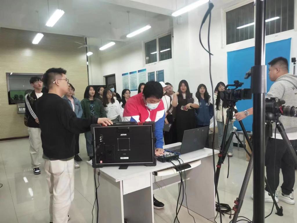 在讲座上,王健向同学们讲解了如Alpha 7S III、FX3、FX6、A7M4等多种器械的特点及其使用方法和适用场景,之后又向学生们解释了曝光三元素:快门、光圈、感光度及景深的区分和需求应用。此外,王健分别从“如何让视频具有电影感”“从拍摄思维转变为创作思维”“确定题材到开拍需要准备什么”“你的影片少了什么”和“影片结构逻辑:脚本-导演-摄影-临场构图-美术思维-音乐理解-现场调度”等五个方面向学生们展示了视频制作的要素及过程。在理论知识讲解完成后,王健向学生们展示了芮城宣传片、和王健本人拍摄的短视频,让学生们在视频中体会拍摄和剪辑的技巧。随后,部分同学又跟随王健来到第二会场,现场学习了部分短视频的拍摄技巧。