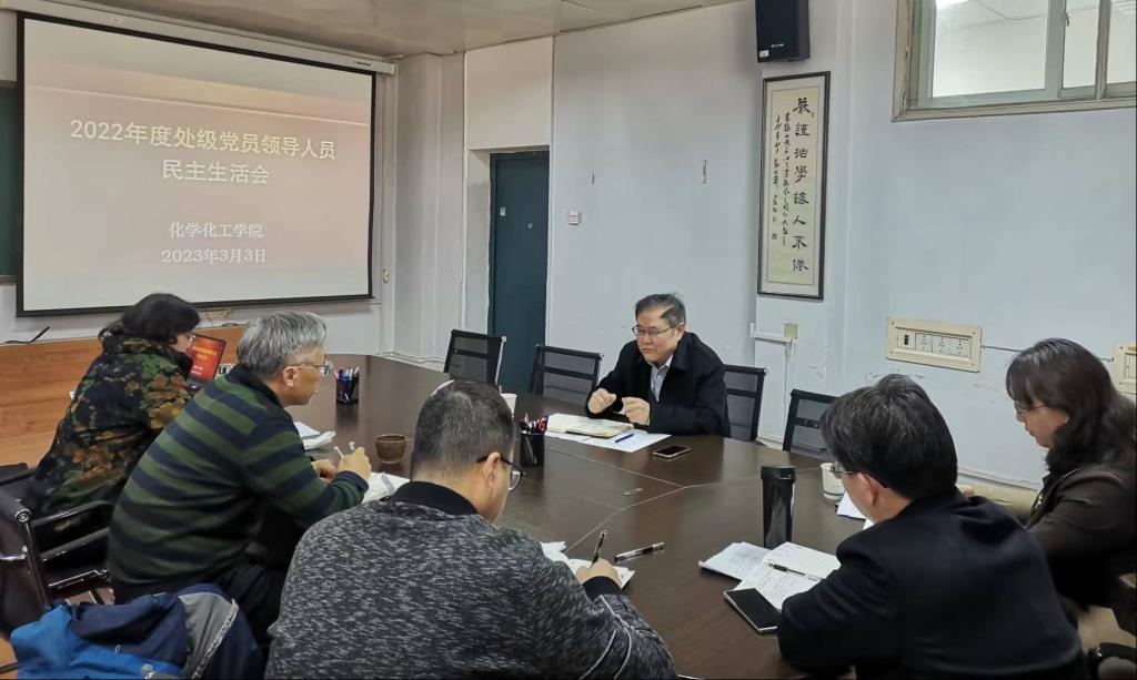 3月3日下午,化学化工学院在雁塔校区2号实验楼212会议室召开2022年度处级党员领导人员民主生活会。第六督导组组长、党委统战部部长吴复雷到会督导,化学化工学院领导班子全体成员参加,会议由学院党委书记司马文龙主持。