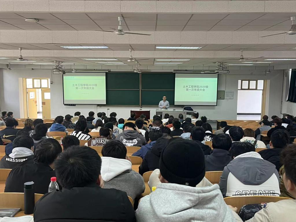 3月1日下午,土木工程学院在博览楼134教室召开2020级学生主题年级大会。辅导员李化杰主持会议,2020级全体同学参加大会。