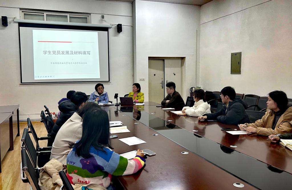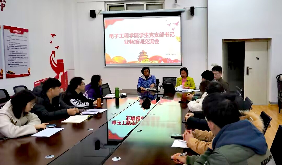电子工程学院于2月27日晚在鄠邑校区行知楼321组织开展学生党支部书记业务培训交流会,学院党委副书记毕轶慧、兼职组织员李君和学生党支部书记线上线下同步参加会议。