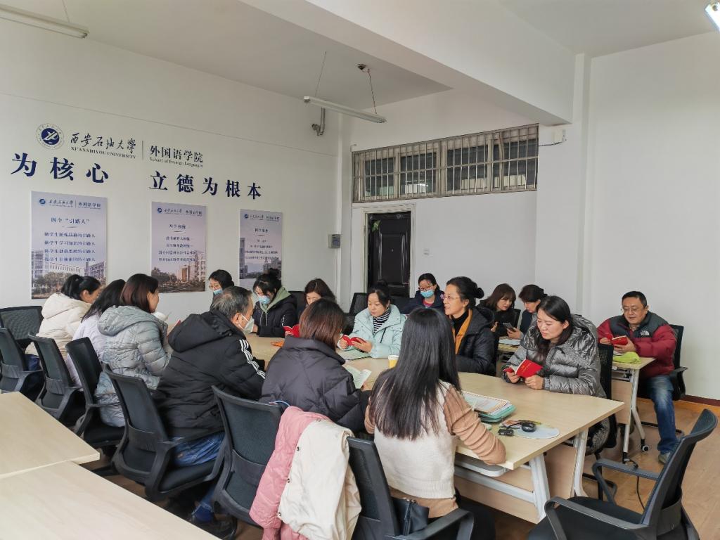 2月22日下午2:00,外国语学院大学外语第一教学部党支部在雁塔校区华油能源楼706室召开师德师风法规专题学习会议,会议由党支部书记付俊芳主持,大学外语第一教学部全体党员教师参加会议。