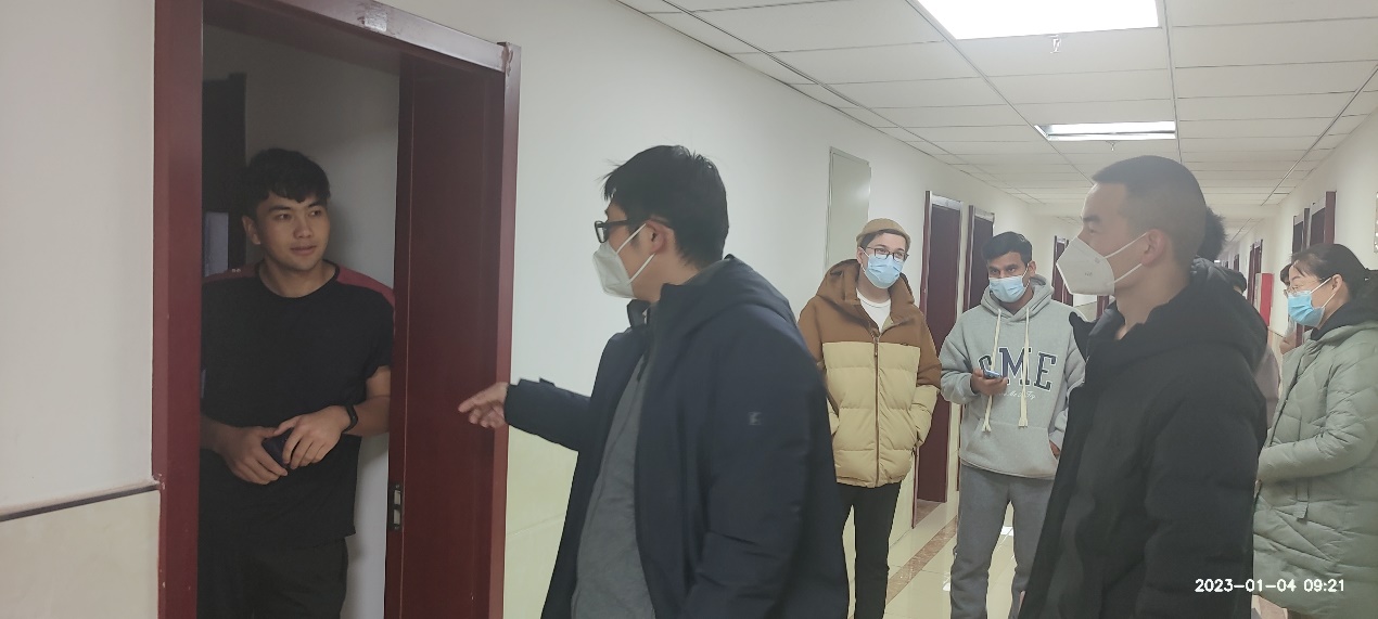 寒假将至,为确保在校国际学生度过一个欢乐祥和安全的春节假期,国际教育学院认真开展公寓安全风险和隐患排查整改工作。1月4日上午,副院长颜庭星带队对明德校区国际学生公寓进行了全面安全隐患排查。