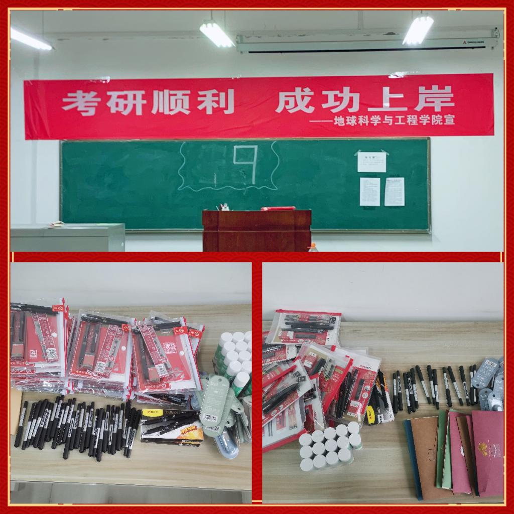 “研”途相伴,温情护航——2022年考研笔试将近,考研学子进入最后的冲刺阶段,为鼓励学生们坚定信念及以积极的心态迎接考研。地球科学与工程学院为考研学子们送上“福袋”。向每一名考研同学发放了考研文具大礼包,礼包内容丰富,包含各类考试专用文具,为同学们送上迎战考试的“利器”。文具上印着“旗开得胜”、“前程似锦”、“金榜题名”等字样,处处都体现着“实用”与“暖心”,饱含了学院对考研同学们的真挚问候和深切祝福。