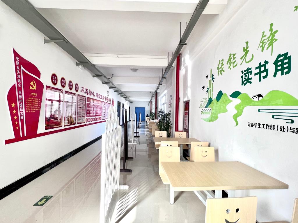 学院充分利用校园文化走廊和学生工作办公室,与校党委组织部共建了党建文化长廊,建成了涵盖党的二十大精神、“数”读党的二十大报告、党的二十大报告摘登、党的宗旨、党的纪律、党员的义务、党员的权利等为主题的文化墙,切实将“空白墙”变为“学习墙”。走廊紧跟新时代步伐,以展板与标语为载体,生动新颖、图文并茂地展示党的二十大报告内容,方便师生在工作和学习之余随时置身其中,潜移默化地接受党的二十大精神洗礼,不断推动党的二十大精神入脑入心。文化走廊充分利用有限的区域发挥宣传作用,不断以科学的理论武装师生,以正确的舆论引导师生,以高尚的精神塑造师生,同时又与“绿能先锋读书角”交相呼应,为推动党建与学风建设深度融合提供了新的平台。