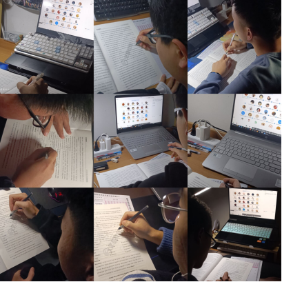 从考试前的试音工作开始,每位同学都能迅速的调整状态,并向主持人及时反映试音问题。考试过程中,由各班学委负责,以宿舍为单位,互相监督互相促进,营造良好的答题氛围。即使是在线上举办,每一位参与考试的同学都依旧认真严肃的对待,努力发挥出最好水平。