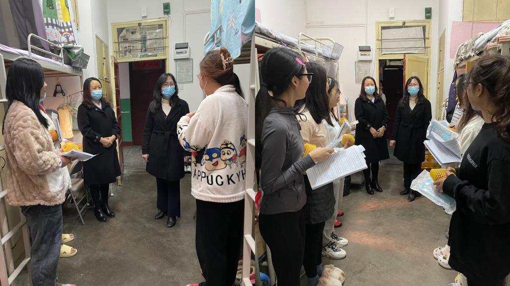 11月27日晚,院党委书记田虹霞、副院长刘辉一行,深入雁塔校区学生公寓看望慰问在校研究生,了解学生面临的实际困难,并为学生送去医用口罩、苹果等慰问品。研2021级辅导员陶李陪同走访。