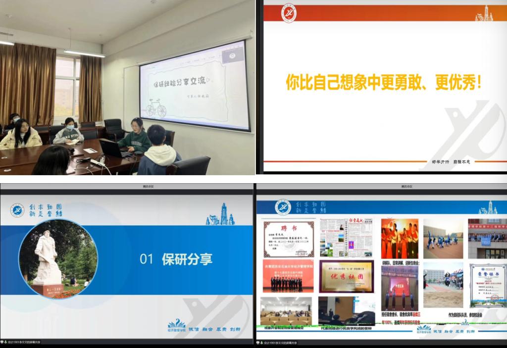 为进一步加强学风建设,充分发挥优秀学生的示范引领作用,经济管理学院于11月13日通过线上线下相结合的方式举办推免和国家奖学金获得学生经验交流分享会。会议由2019级辅导员王中立主持,2020级辅导员张硕及2020级、2021级、2022级学生代表500余人参加了此次交流分享会。