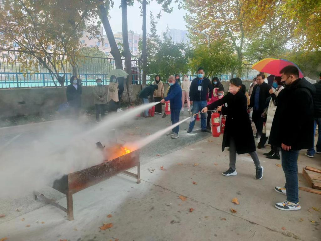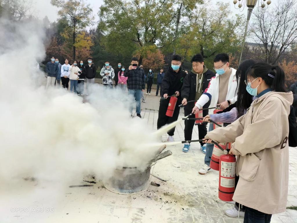 活动期间,保卫处工作人员讲解了掌握灭火技能的重要性,灭火器的种类、工作原理、操作步骤以及使用过程中需要注意的细节,并演示了使用干粉灭火器扑灭初起火灾的操作方法和技巧。在灭火器操作演练中,大家五人一组,积极参与,按照一摇、二提、三拔、四握、五压的程序,体验正确使用灭火器的方法和步骤。