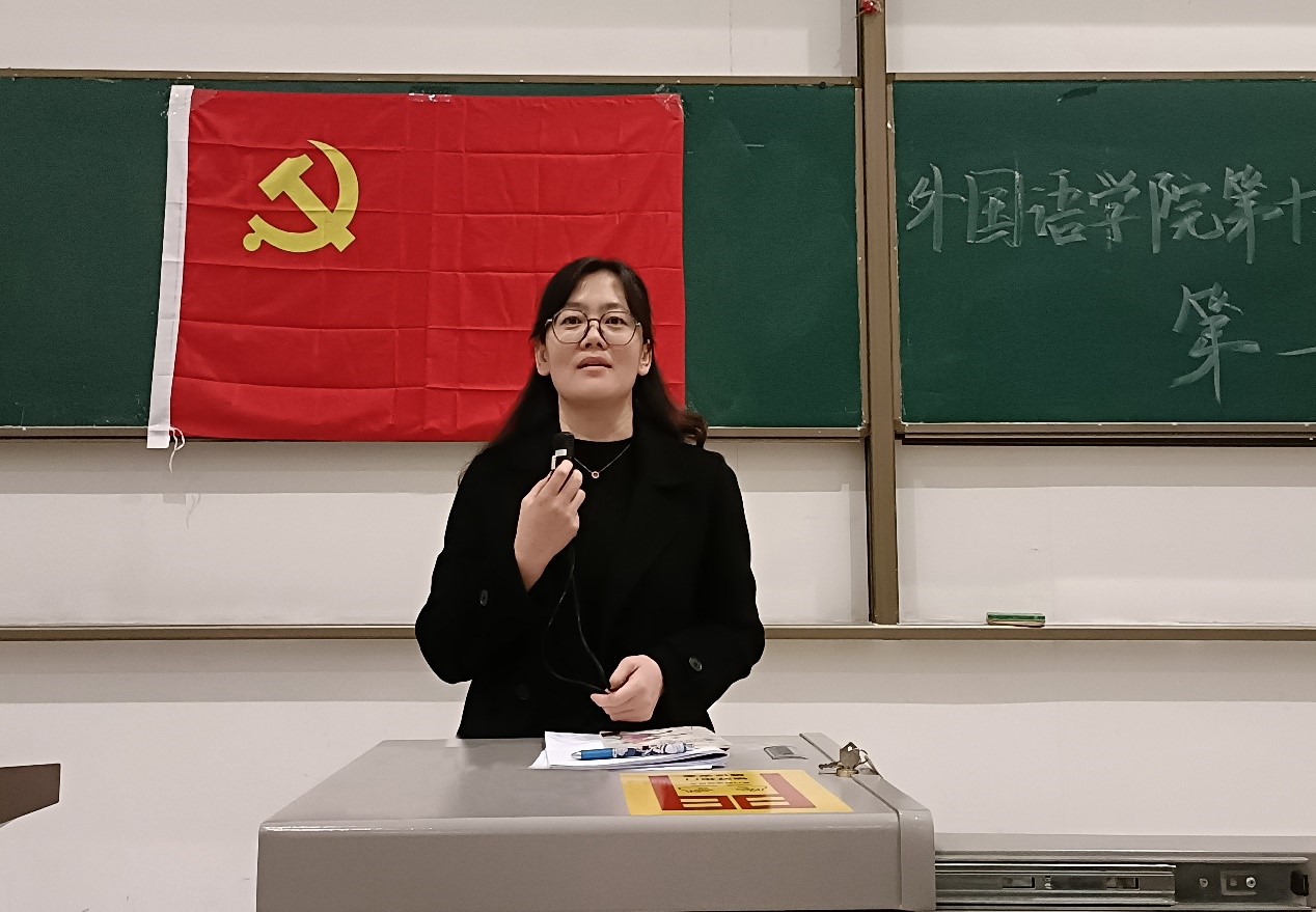 为加强对入党积极分子的教育和培养,引导青年学生深刻领会党的二十大报告的精神实质和精髓要义,进一步坚定入理想信念。11月8日晚,外国语学院在鄠邑校区开物楼115教室举行第11期入党积极分子培训班开班仪式暨第一次集中授课。院党委书记田虹霞授课,2022年全体入党积极分子参加。开班仪式由院学工办主任周宇主持。
