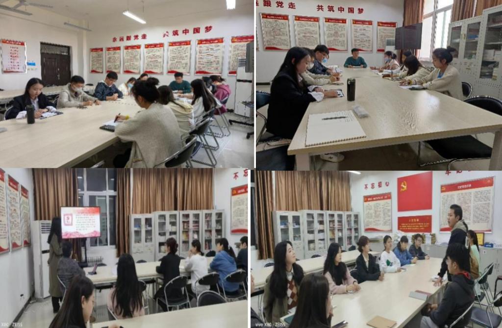 经济系学生党支部书记王中立和副书记张珍勤带领经济系学生支部党员召开深入学习党的二十大精神。会上,支部党员就党的二十大报告有关内容进行了学习探讨,党员们认为在有理想、敢担当、能吃苦、肯奋斗的新时代应积极倡导新青年投入到全面建设社会主义现代化国家的火热实践中。王中立指出,青年强则国家强,作为高校工作者,更应该积极响应党的号召,探讨如何将党的二十大精神融入实际工作,以更高标准要求激发师生的奋斗精神,做到知行合一。