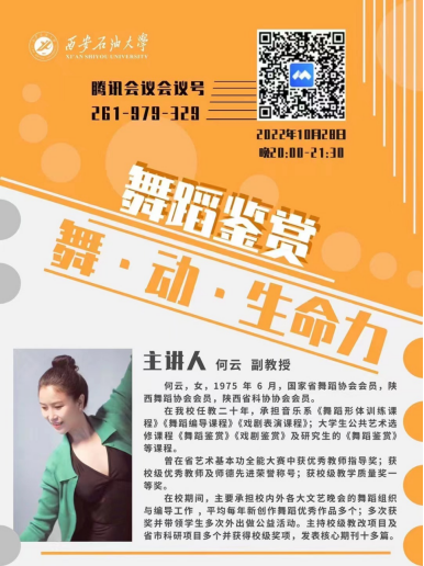 为了进一步拓宽bat365学生的视野,培养学生的学习兴趣,提高综合素质,推进校园文化建设,音乐系积极助力由教务处、学生处联合举办的“西石大微讲堂”。分别于2022年10月20、28日晚为全校师生分别开展了《聆听韵贯千载的琵琶之声》和《舞·动·生命力》的线上讲座,全校师生共计500余人观看讲座直播,本次讲座由音乐系副主任张帆副教授、何云副教授讲授。