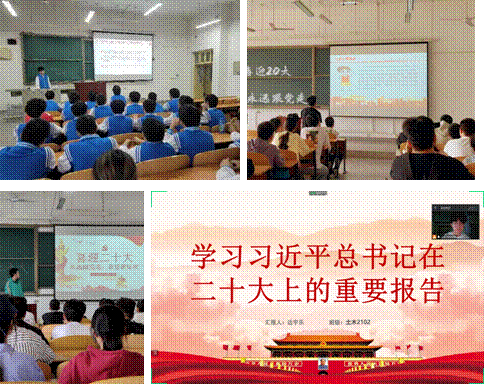 三是主题班会“学”:按照《关于开展主题班会教育工作的通知》文件要求,各班积极组织以“青春献礼二十大,强国有我新征程”为主题的班会,同学们纷纷表示坚决弘扬伟大建党精神,自信自强、守正创新,踔厉奋发、勇毅前行,为全面建设社会主义现代化国家、全面推进中华民族伟大复兴而团结奋斗,为加强班级建设统一了思想认识。