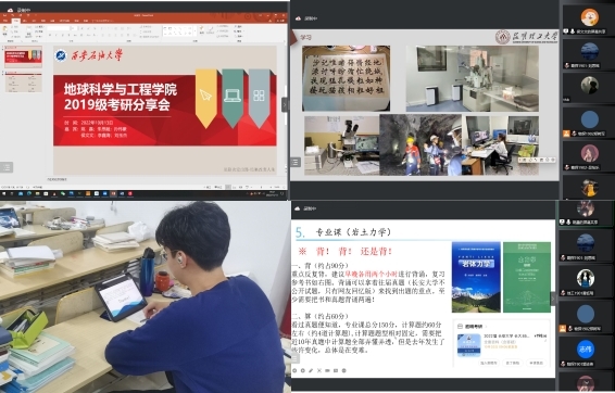为进一步激发2019级学生的考研热情,10月13日,地球科学与工程学院举办了线上考研经验交流会。邀请了6位毕业于地科院现就读于中国地质科学院、中南大学、长安大学、西南石油大学、中国石油大学(北京)和昆明理工大学的2017级和2018级优秀学长进行了交流分享。学院全体学工干部及2019级学生参加了此次交流会。