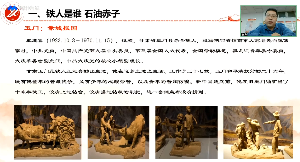 张伟老师对2022级新生进行石油精神铁人精神教育,通过对铁人王进喜的介绍、铁人精神的内涵蕴意的分析、铁人精神的时代价值、铁人精神的传承弘扬,引导新生深刻领悟并吸取铁人精神内涵,要求同学们要有铁人的精神,奋发图强,刻苦学习专业知识,掌握扎实本领。