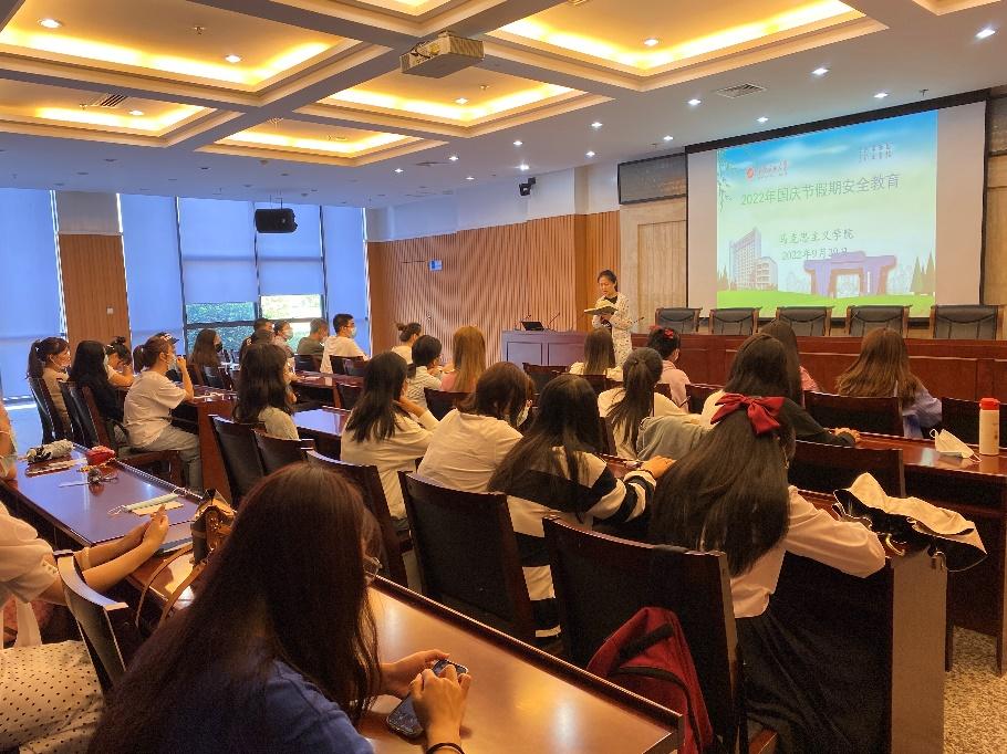 本次会议主要围绕国庆节假期安全教育及疫情防控工作展开,希望研究生切实提高站位,扛起责任,牢记假期安全注意事项,共筑身体与心理安全长城,度过一个平安而又愉快的假期。