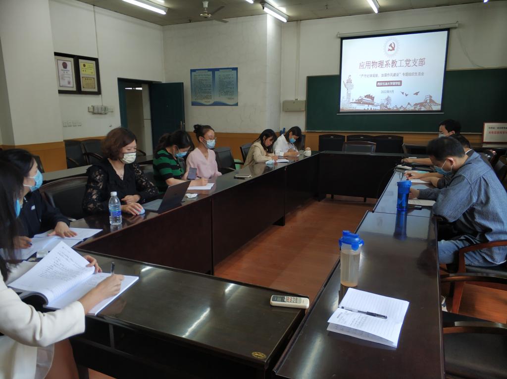 从9月14日开始,理学院各师生党支部陆续组织开展了以“严守纪律规矩、加强作风建设”为主题的组织生活会。各教工党支部党员结合参与活动收获,结合岗位职责和履职尽责等方面谈认识、谈体会,查摆问题,主动开展批评与自我批评。各学生党支部党员结合党员身份谈使命担当、谈学习提升,并就自身在思想和学习方面的不足,开展批评与自我批评,就存在的问题明确提出努力方向。