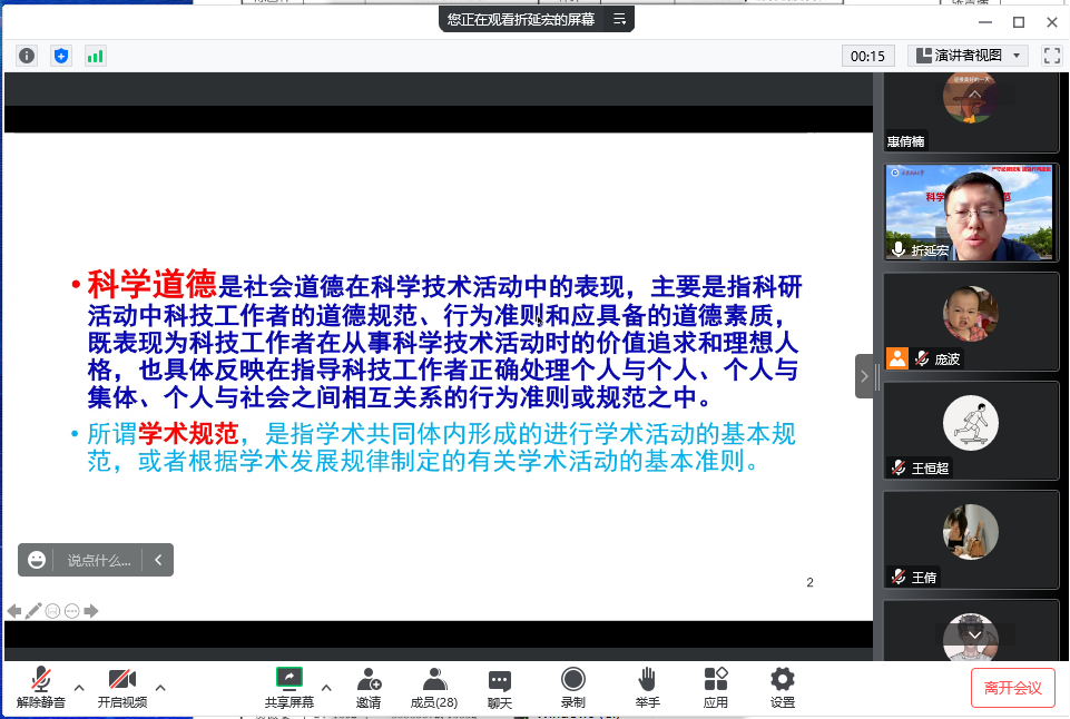 9月25日、27日理学院党委副书记马小刚、副院长折延宏先后给全体本科生和研究生党员作了专题学习教育。25日,马小刚给全体本科生党员作了《中国共产党纪律处分条例》专题学习辅导,带领全体本科生党员学习了“对违反政治纪律行为的处分”相关章节;27日,折延宏给全体研究生党员作了《严守纪律规矩,加强作风建设——研究生科学道德与学术规范》的专题讲座。教育引导学生党员将个人理想追求融入到国家和民族的事业中,为党、为祖国、为人民多作贡献。