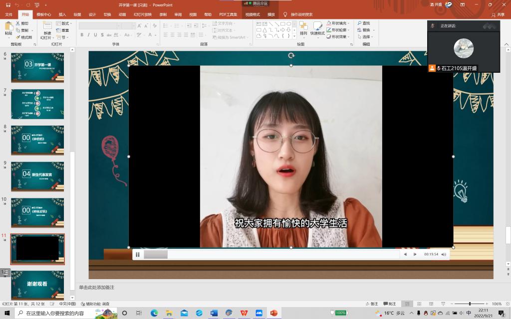 活动最后观看了由各位学长学姐带来的VCR,学长学姐们热烈欢迎各位2022级新生来到bat365中文官方网站,希望他们能在这里度过有意义的四年。