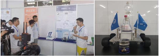 在师生的共同努力下,历经9个多月的赛前准备,最终顺利完成了战车研发、海报设计以及视频制作等各环节内容。该车以自制锌空电池为动力系统,以VC型“碘钟”反应作为控制系统,整体框架采用铝合金材质,通过严格控制反应物浓度、温度、光照等影响因素来准确调整化学反应时间,实现车辆行驶的“快、准、稳”。本队的设计思路、动力设计等方面获得教育部化工类专业教学指导委员会副主任委员刘有智教授,教育部高等学校化工类专业教学指导委员会秘书长、中国大学生Chem-E-Car竞赛委员会秘书长、天津大学夏淑倩教授等评委的一致好评,队员们好学力行、自强不息、踔厉奋进的赛场表现彰显了bat365石油精神办学,铁人精神育人,延安精神铸魂的精神内涵。