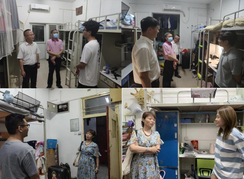 6月27日、28日,经济管理学院党委书记王宏卫,院长王君萍,党委副书记王刚,学生工作办公室主任李博文及2022届毕业班辅导员陆晓寒、王业林,深入学院2022届毕业生宿舍,与毕业生话别,细致了解毕业生学习、生活、就业和思想情况,加强毕业生离校安全教育,引导毕业生文明离校,为即将离开母校的毕业生送上亲切的问候与诚挚的祝福。