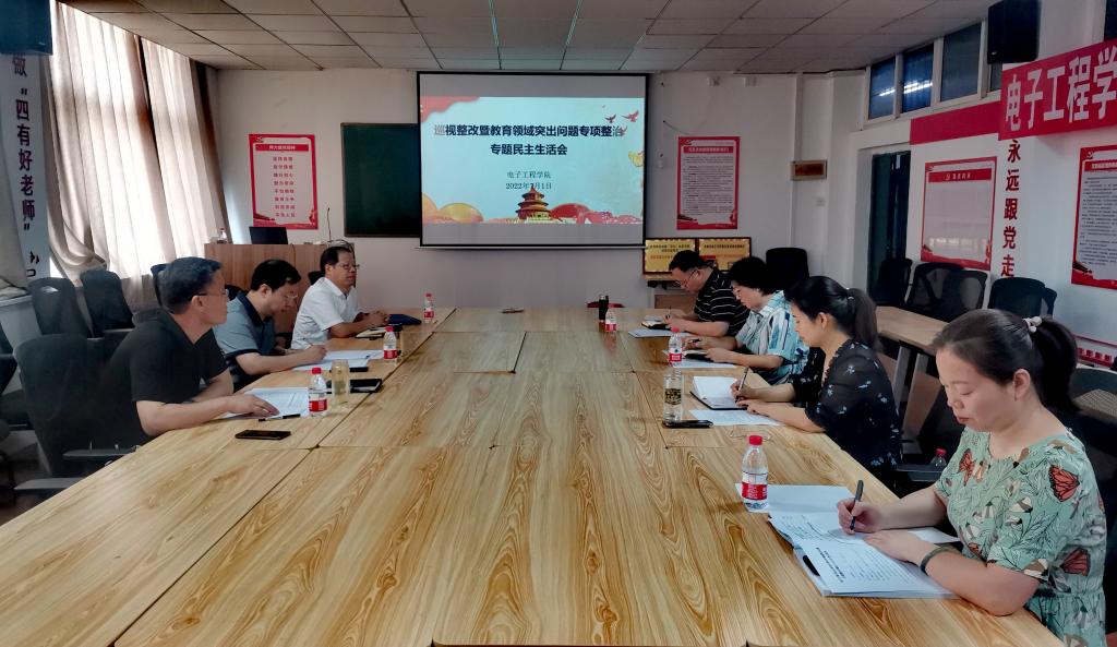 7月1日下午,电子工程学院在雁塔校区华油能源楼905召开巡视整改暨教育领域突出问题专项整治专题民主生活会。第四督导组组长、校党委组织部常务副部长种宇宏到会督导,电子工程学院全体班子成员参加,会议由学院党委书记何铖主持。
