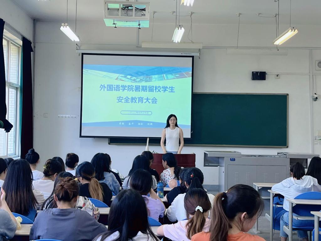 为进一步做好假期留校学生教育管理服务工作,落实学校《学工函〔2022〕13号-关于做好2022年暑假留校学生教育管理服务工作的通知》的工作要求,外国语学院于2022年6月30日下午在A119召开暑期留校学生安全教育大会,会议由辅导员陶李主持、学院全体留校学生参加会议。