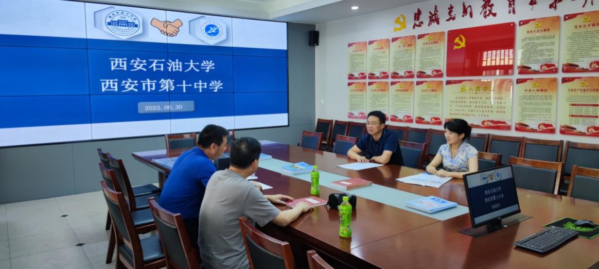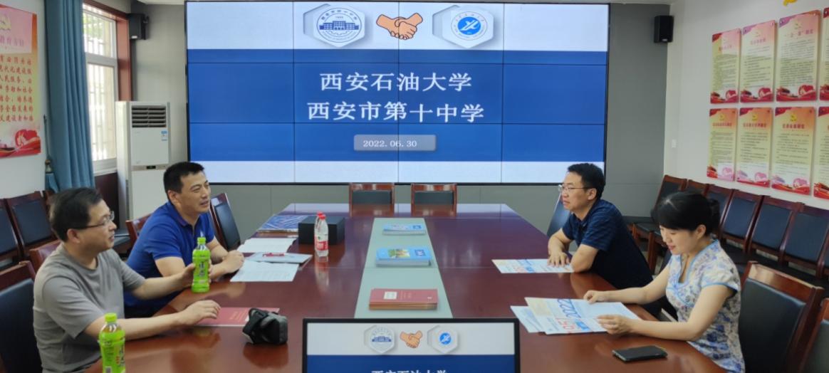 为推进优秀生源基地建设,构建协同发展共同体,2022年6月30日下午,音乐系党总支书记孟开元、机械工程学院党委书记蔡建文等一行三人赴西安市第十中学,与西安市第十中学罗庆军校长、尹钰副校长就建立bat365中文官方网站“优秀生源基地”进行了深入交流座谈。
