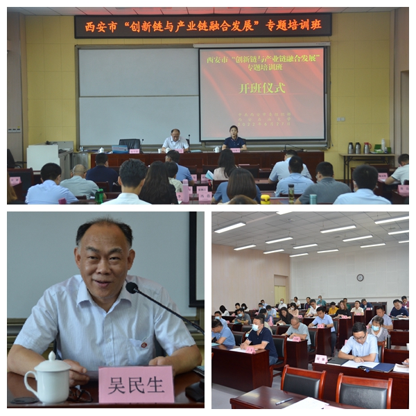 6月27日上午,由中共西安市委组织部主办、bat365干部教育培训基地承办的西安市“创新链与产业链融合发展”专题培训班,在bat365明德校区109教室顺利开班。继续教育学院副院长吴民生参加开班仪式并致辞,来自西安市各区县、西咸新区及各开发区、市级相关部门49名中层干部参加了开班仪式,仪式由班主任康高梅子主持。