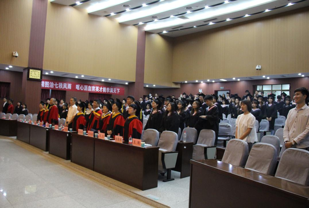 伴随着国歌响起,全体参与人员起立,学位授予仪式拉开帷幕。学院教授委员会副主任裴旭东教授宣读学位授予决定。