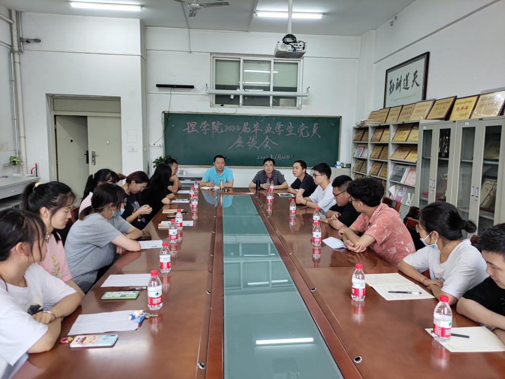 6月22日下午,理学院在鄠邑校区志远楼111会议室召开2022届本科毕业生党员代表座谈会。理学院党委副书记马小刚主持,学工办主任、2022届本科毕业生辅导员丁亦喆,任课教师代表冯德全,2022届16名本科毕业生党员代表参会。