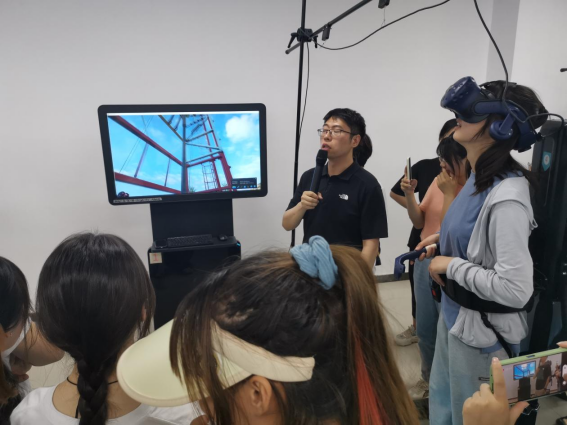 工程训练中心的张磊老师与赵栋老师带领同学们分别进行了石油钻井井控接单杆训练与石油工业虚拟与仿真操作训练。其中,石油工业虚拟与仿真操作训练新颖独特,极大地丰富了室内实践内容,而多技术的融合也极大地提升了同学们体验操作时的兴趣和热情。在操作过程中,同学们认真聆听老师的讲解、并结合自身感兴趣的问题向老师询问了油田勘探、开采、集输的相关知识。