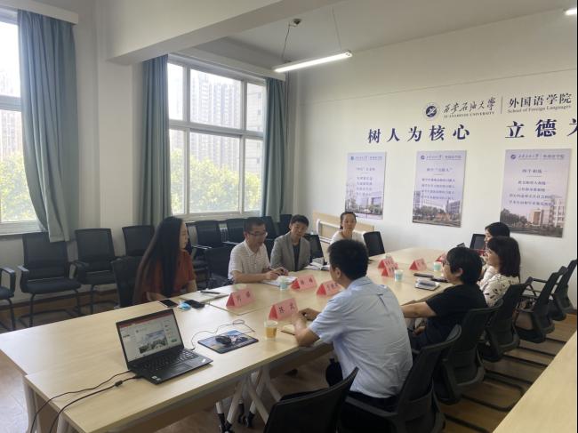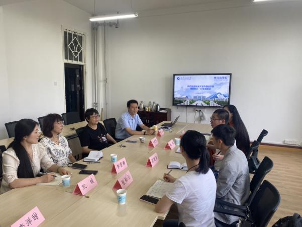 2022年6月17日上午,延安大学外国语学院韩峰副院长一行四人来外国语学院交流座谈。外国语学院院长于艳英、外国语学院副院长陈武、外国语学院大学外语第一教学部主任李雪梅、大学外语第二教学部副主任武绒以及外国语学院教学办李洋甜参加了此次会议。