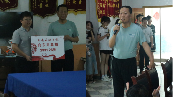 到达儿童村,机械工程学院的师生受到了孩子们的热烈欢迎,团委书记文爱国老师代表学院将前期一周募捐的善款悉数赠予儿童村,并对此次主题实践活动做了讲话,他表示:一是bat365中文官方网站机械工程学院自1997年以来二十六年不间断赴儿童村开展爱心公益活动,广大青年大学生们在学中做、在做中学,努力把自己培养成德智体美劳全面发展的社会主义合格建设者和可靠接班人。二是希望党员、入党积极分子同学们传承好二十六年机械学子公益活动的初心,敢于担当,勇于作为,跑好“大手拉小手,爱心暖东周”的接力赛。三是希望儿童村的孩子们能乐观积极生活,健康成长,努力成才,树立远大理想信念,珍惜学习机会,养成良好品行早日成为社会有用之才。